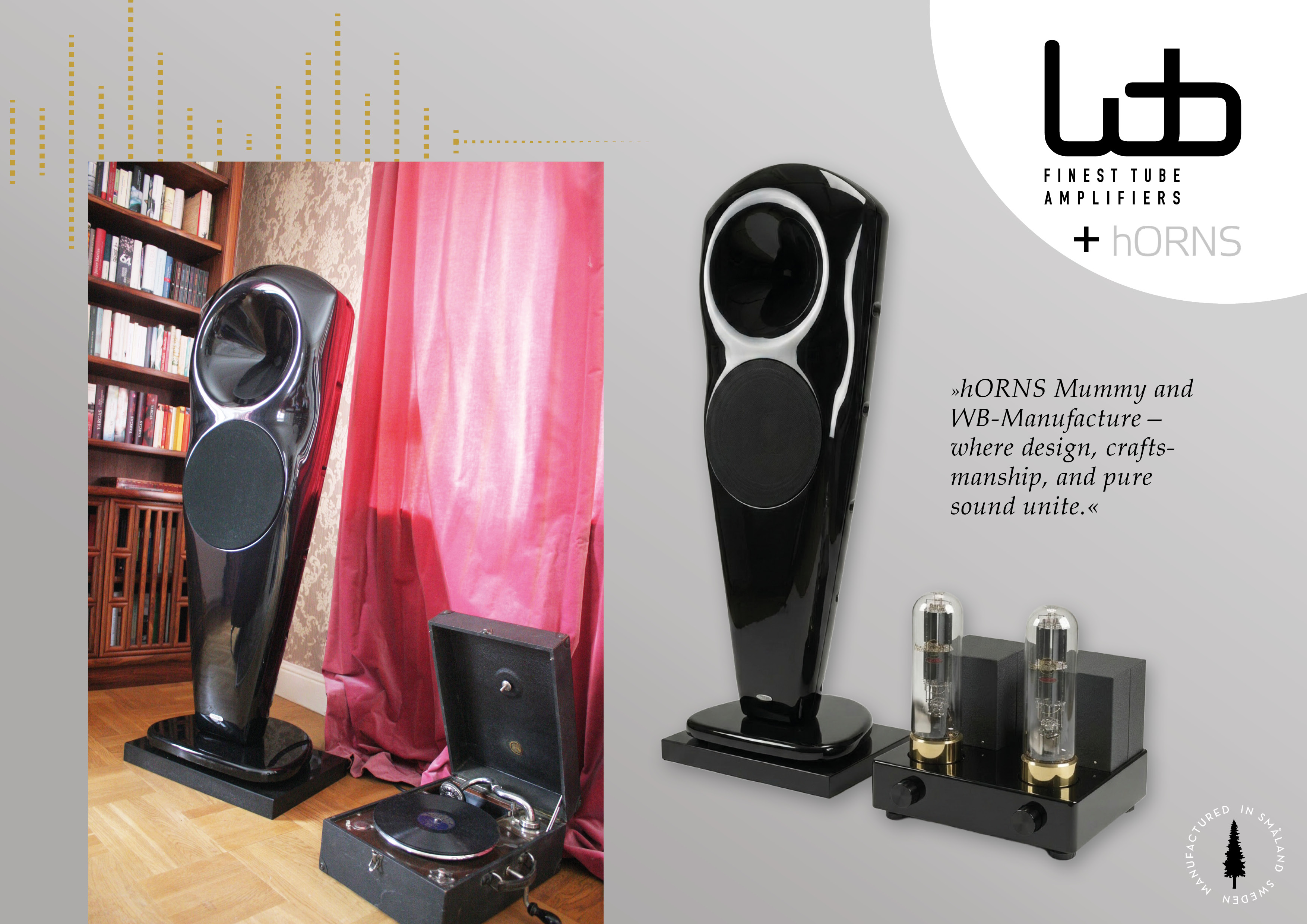 stands for individual tube amplifiers in "No Nonsense" technology, carefully handmade in small quantities in Småland Sweden. We do not use hand-wound capacitors and unidirectional silver wire in our devices, but selected, best industrial quality and carefully designed and measured circuits. All our push-pull amplifiers feature a fully symmetrical circuit design with true differential amplifiers; the single ended amplifiers a specially designed solid state driver stage. Only when the amplifiers convince metrologically, the first listening tests take place at our company. In the circuit design, the focus is on large bandwidth and simultaneously low distortion even without negative feedback. Negative feedback is only used to a small extent in our devices to achieve optimum channel equality. The negative feedback factor is a maximum of 6dB, while the power bandwidth for the push-pull amplifiers is over 100kHz.